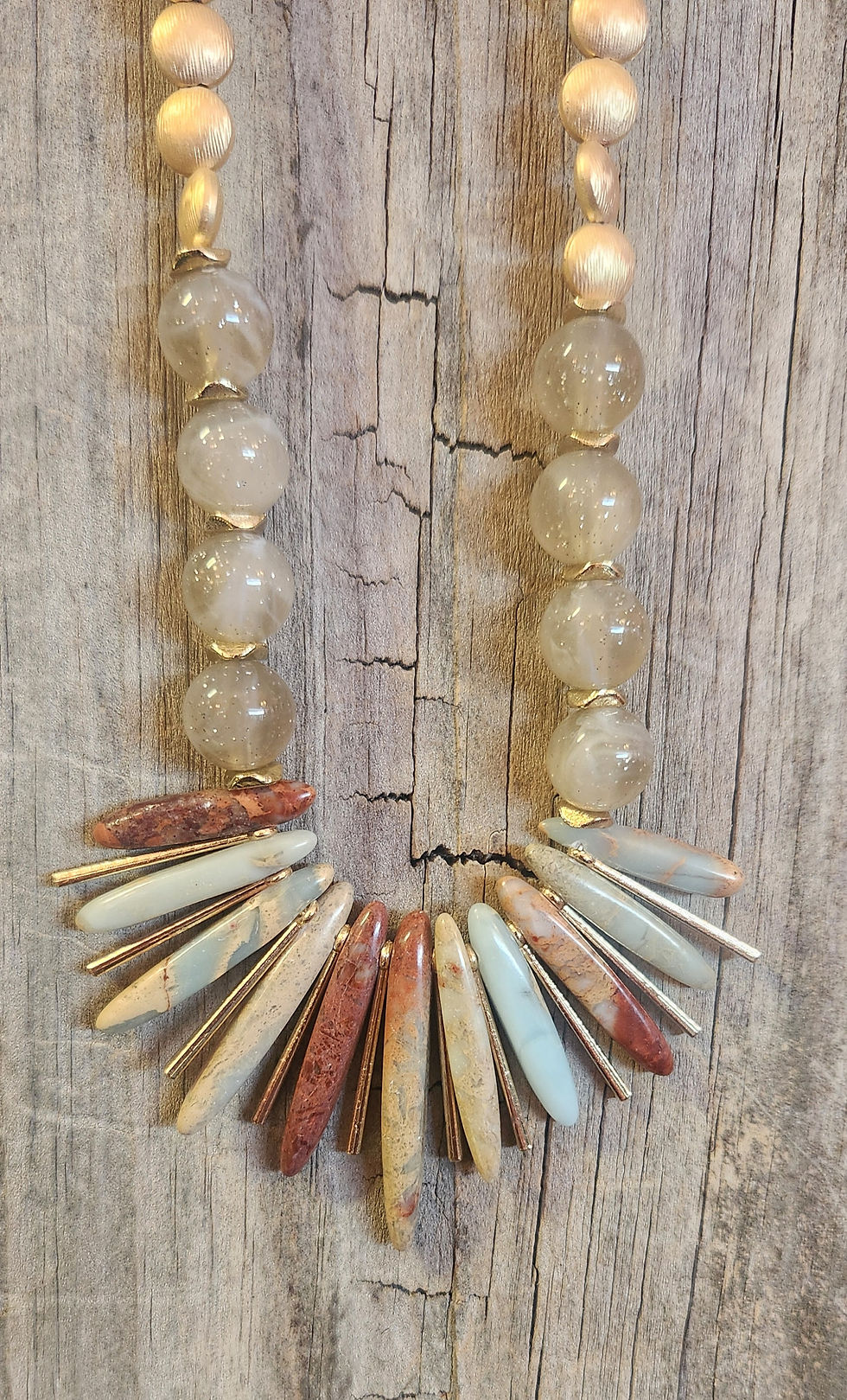 RAIN JEWELRY BRAND GOLD 18 -20" NATURAL STONE SPIKE NECKLACE & EARRING SET #3696