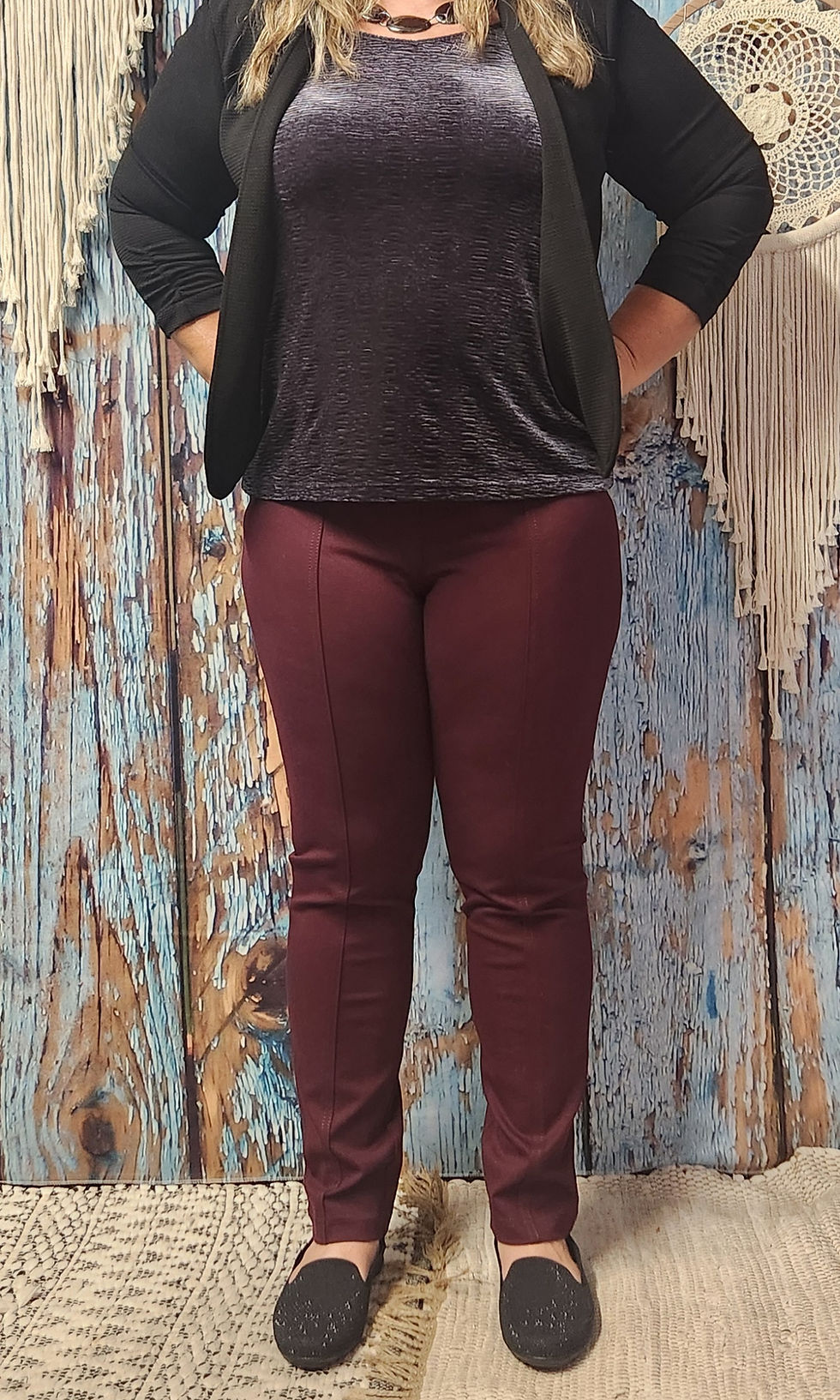 BURGUNDY THICK PULL ON ELASTIC WAIST OFFICE DRESS PANT #3885